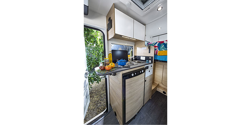 L’aménagement intérieur moderne, offre le confort d’un grand camping-car dans un format réduit :